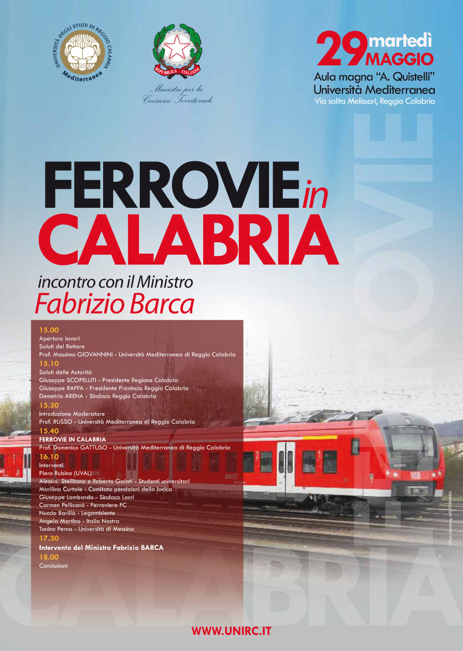 29 maggio "Ferrovie in Calabria", incontro con il ministro Fabrizio Barca