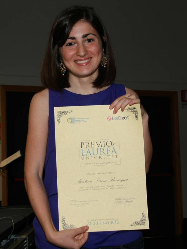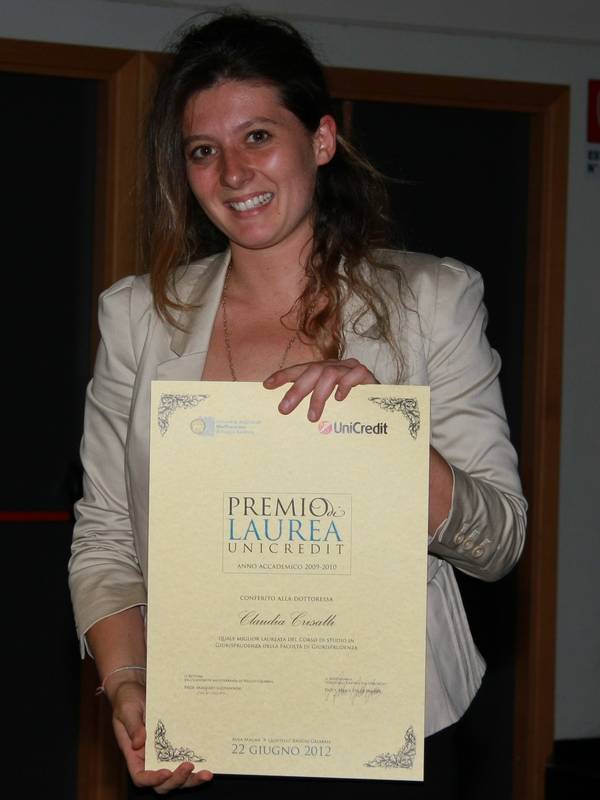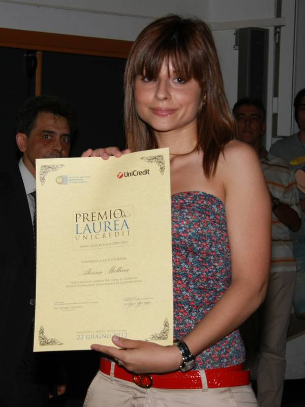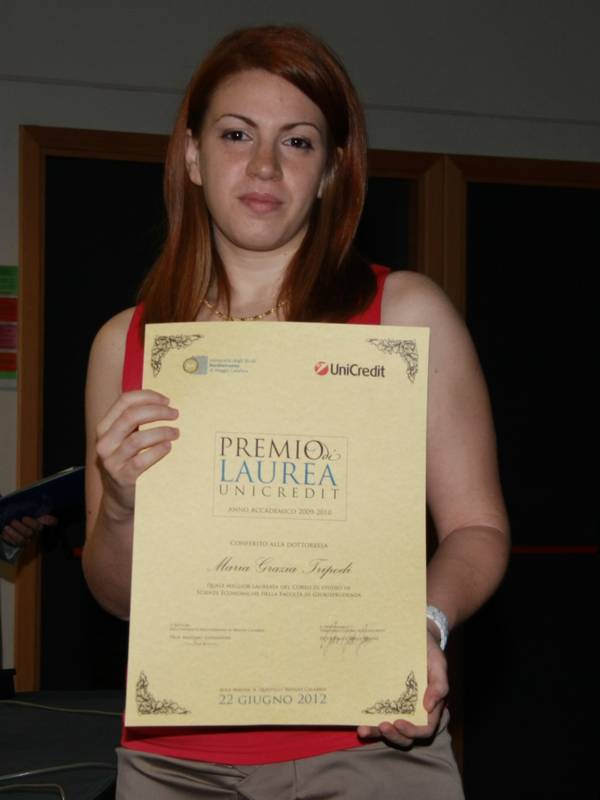 Per celebrare il brillante risultato raggiunto dagli universitari, UniCredit ha donato un premio in denaro del valore di 1.000 euro per gratificarli dell’impegno profuso negli anni di studio.