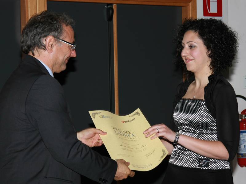 "Il contesto economico attuale è sotto gli occhi di tutti - ha esordito Felice Delle Femine rivolgendosi ai premiati – e il Paese per ripartire ha un gran bisogno di giovani e brillanti laureati. Il miglioramento di questa nostra comunità sarà possibile solo grazie alle vostre capacità e voglia di dare un contributo al Paese. Pertanto UniCredit con questo premio ricorda che l’obiettivo di una banca che vuole essere vicina al territorio in cui opera è proprio quello di valorizzarne le sue risorse. Per l’Istituto che rappresento l’attuale contesto economico può essere superato solo se le aziende sono messe nelle condizioni di investire in innovazione e internazionalizzazione; per raggiungere tali obiettivi è fondamentale puntare sui giovani e sulla loro formazione affinché possano essere di stimolo al rilancio economico in contesti competitivi. Raggiungere un difficile traguardo come la laurea è sicuramente un merito dei giovani laureati, ma anche e soprattutto dei genitori che sono stati i primi ad investire sul loro futuro”.