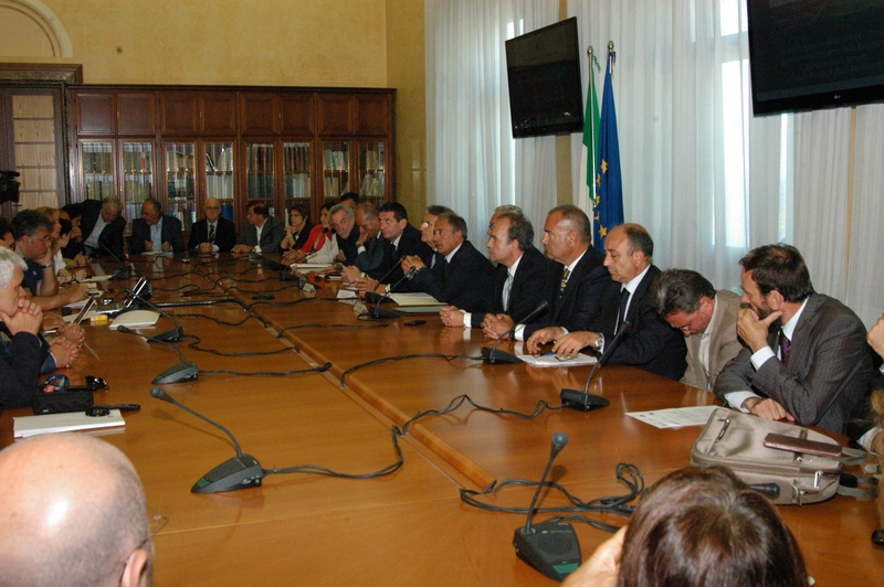 Presenti alla conferenza anche il Commissario del Comune Castaldo, le delegazioni di Camera di Commercio e Mediterranea, oltre ai rappresentanti del mondo produttivo.