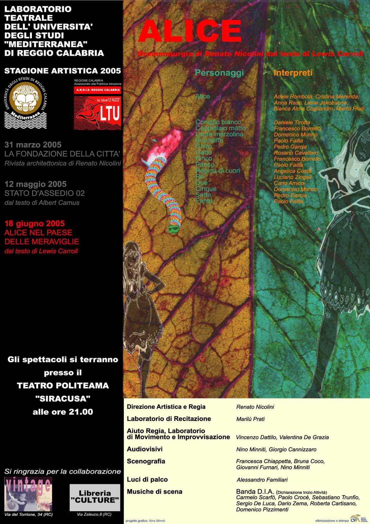 La stagione del Laboratorio Teatrale Universitario a Reggio si concluderà il 18 giugno con la rappresentazione del terzo spettacolo, “Alice”, drammaturgia di Renato Nicolini da Lewis Carroll e Walt Disney.