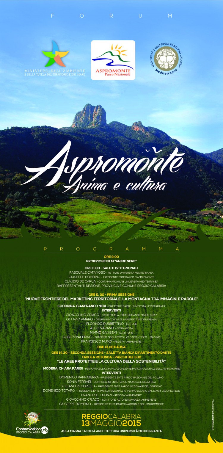 “Aspromonte: anima e cultura” è il titolo dell'evento organizzato dall’Ente Parco Nazionale dell’Aspromonte e dall’Università Mediterranea di Reggio Calabria che si svolgerà il 13 maggio prossimo presso l’Ateneo reggino.
