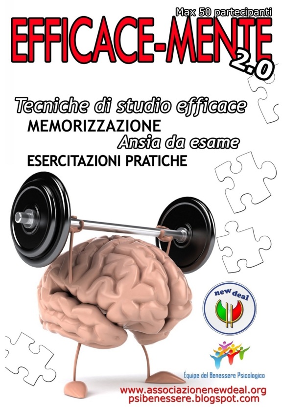 L’Associazione New Deal in collaborazione con l’Equipe del Benessere Psicologico ha il piacere di ri-presentare il corso "EFFICACE-MENTE - Teorie e tecniche per migliorare il metodo di studio”.