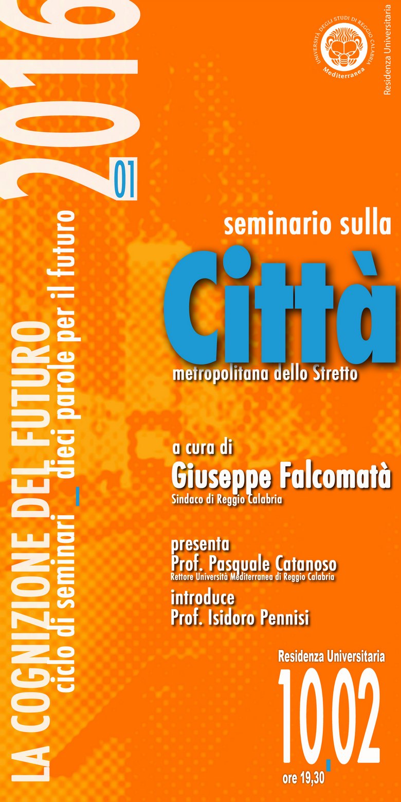 Mercoledì 10 Febbraio 2016 alle ore 19.30 si svolgerà il primo incontro dal titolo “CITTÀ, Metropolitana dello Stretto” condotto dall’avv. Giuseppe Falcomatà sindaco di Reggio Calabria.