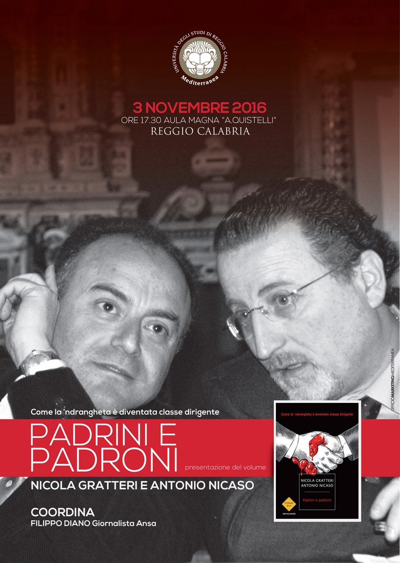 Nicola Gratteri e Antonio Nicaso tornano in Aula Magna di Ateneo per la presentazione di "Padrini e Padroni", undicesimo capitolo delle ricerche congiunte sulla criminalità.
