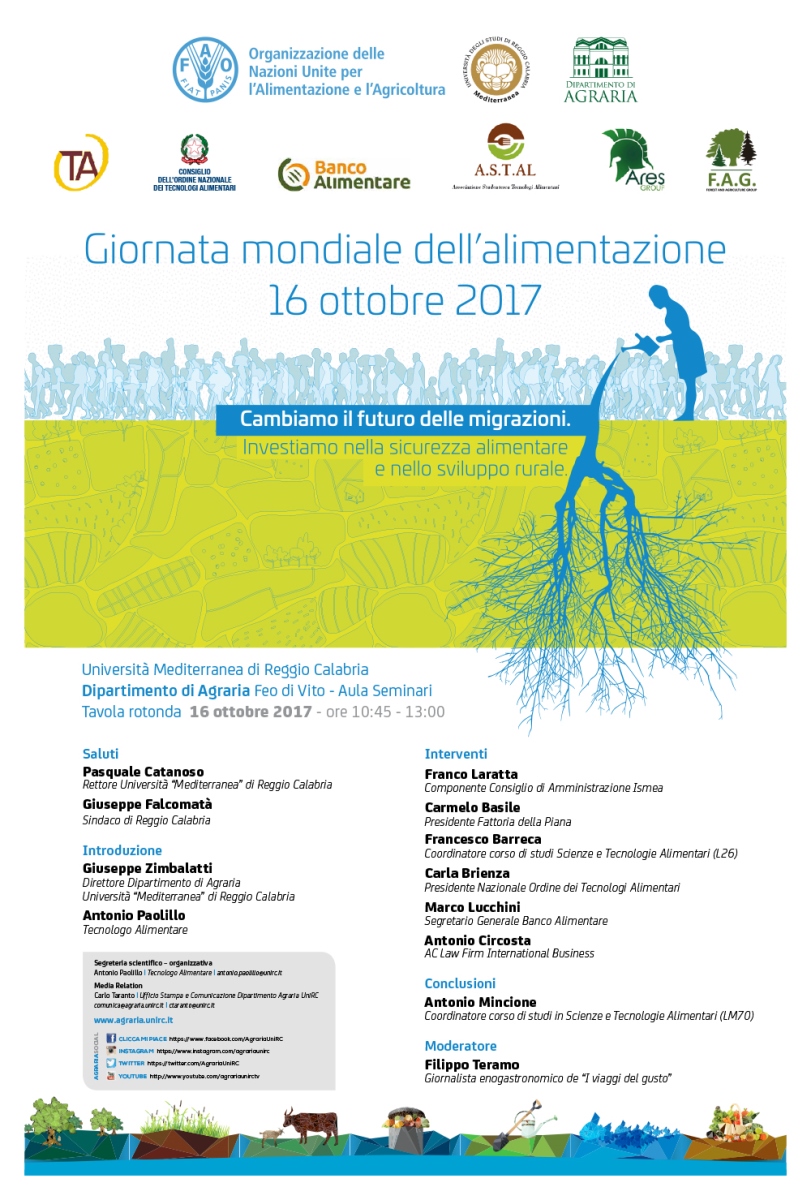 Consapevole della necessità di sostenere e divulgare tali valori anche attraverso iniziative di questo genere, il Dipartimento di Agraria dell’Università “Mediterranea” di Reggio Calabria, dove hanno sede i Corsi di Laurea triennale e magistrale in Scienze e Tecnologie Alimentari, oltre a Scienze Agrarie ed a Scienze Forestali ed Ambientali, organizza una tavola rotonda alla presenza