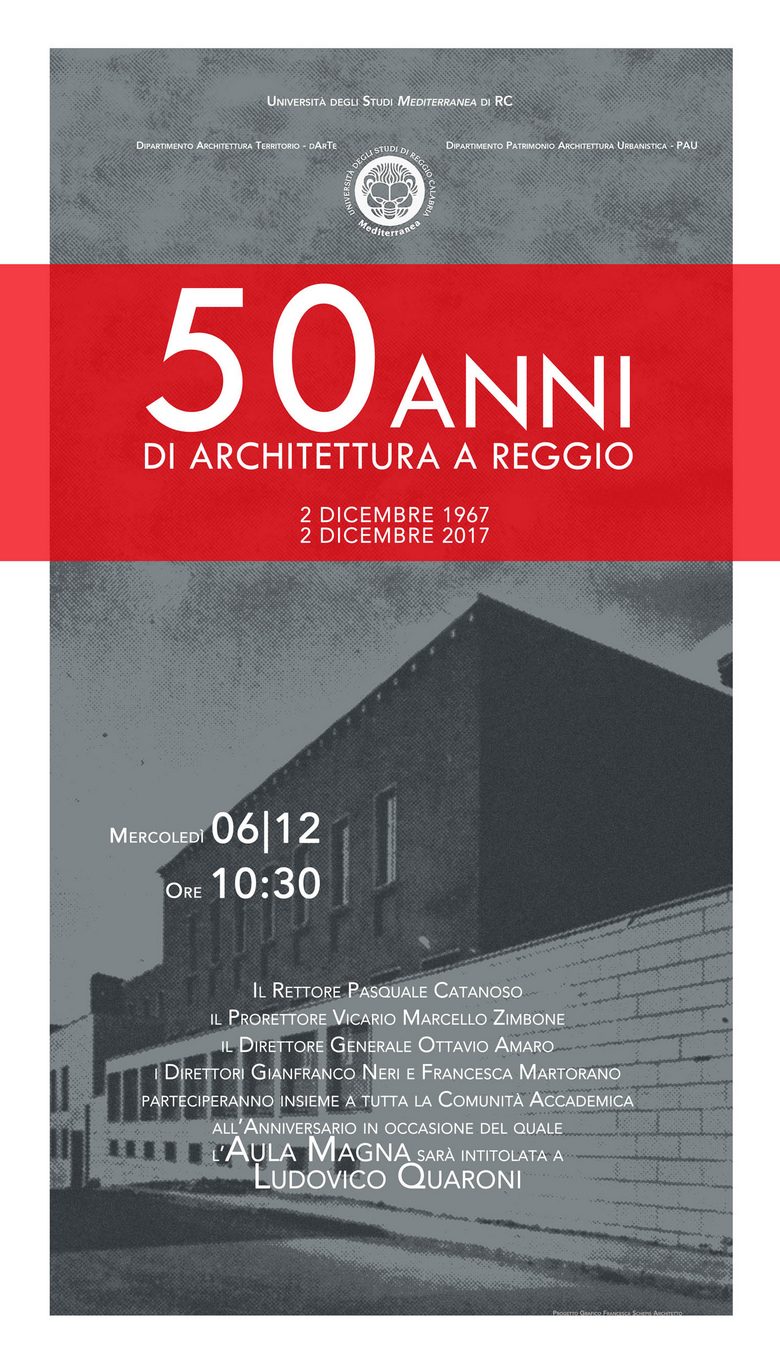 Su iniziativa dei dipartimenti dArTe e PAU, si è svolta oggi alle ore 10:30 nel Foyer dell’Aula Magna di Architettura una breve cerimonia per ricordare questo evento così importante per la società civile e culturale della città di Reggio e della Calabria intera.