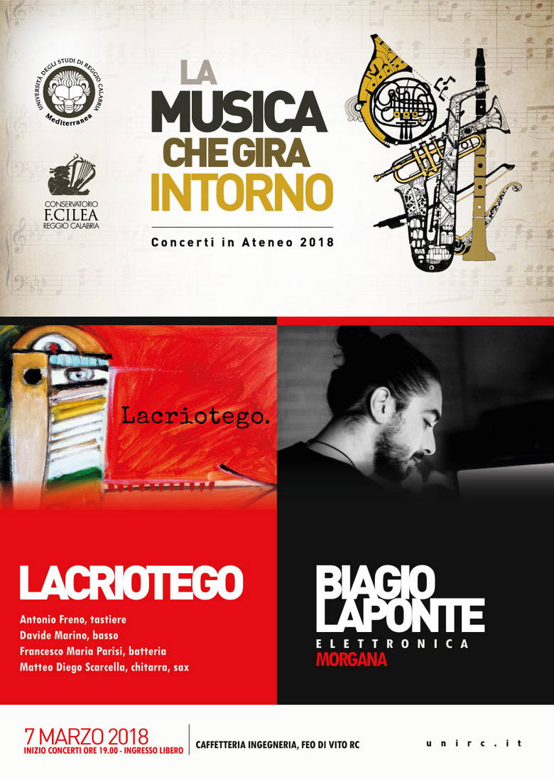 Mercoledì 7 marzo dalle 19.00, la Caffetteria di Ingegneria ospita la doppia esibizione di Biagio Laponte e dei Lacriotego, per il cartellone de "La musica che gira intorno"