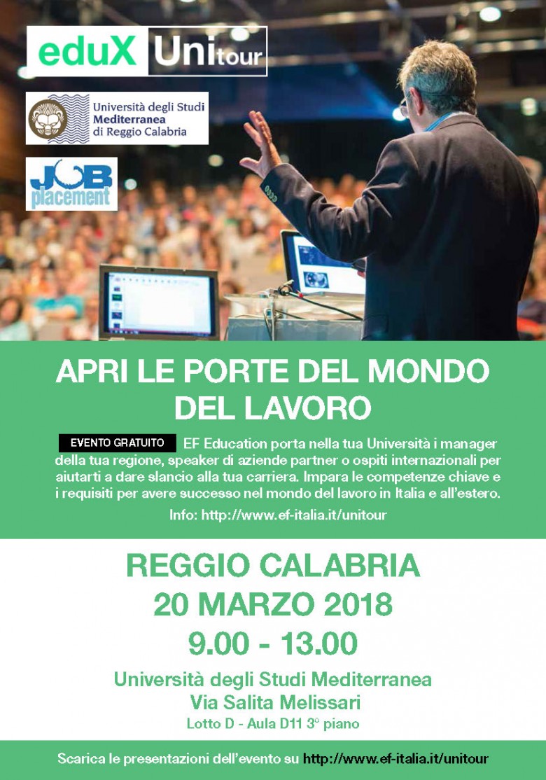 L'ingresso è libero fino ad esaurimento dei posti disponibili. Per ragioni organizzative si prega di iscriversi entro le ore 12.00 del 15 marzo 2018, inviando una mail a jobplacement@unirc.it specificando: il proprio nome e cognome - recapito telefonico – corso di laurea - se studente , laureando o laureato.