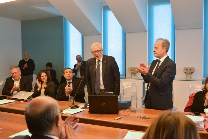 Il nuovo Rettore ha ringraziato il prof. Catanoso per la dedizione ed i risultati raggiunti durante la sua gestione in particolare sotto l'aspetto finanziario. Si è quindi soffermato sul profondo rapporto di amicizia e stima consolidato nel tempo.