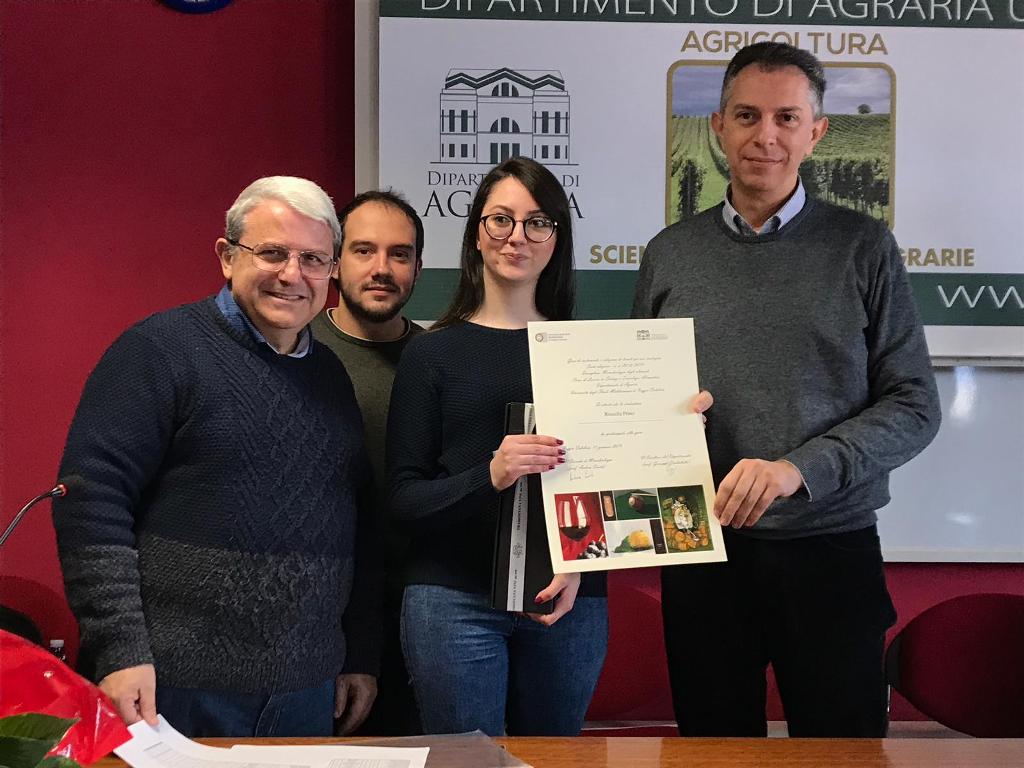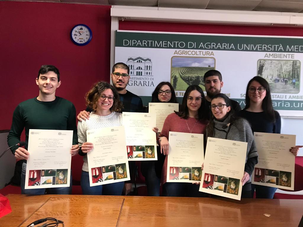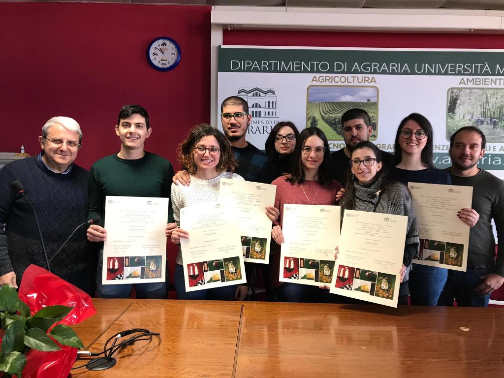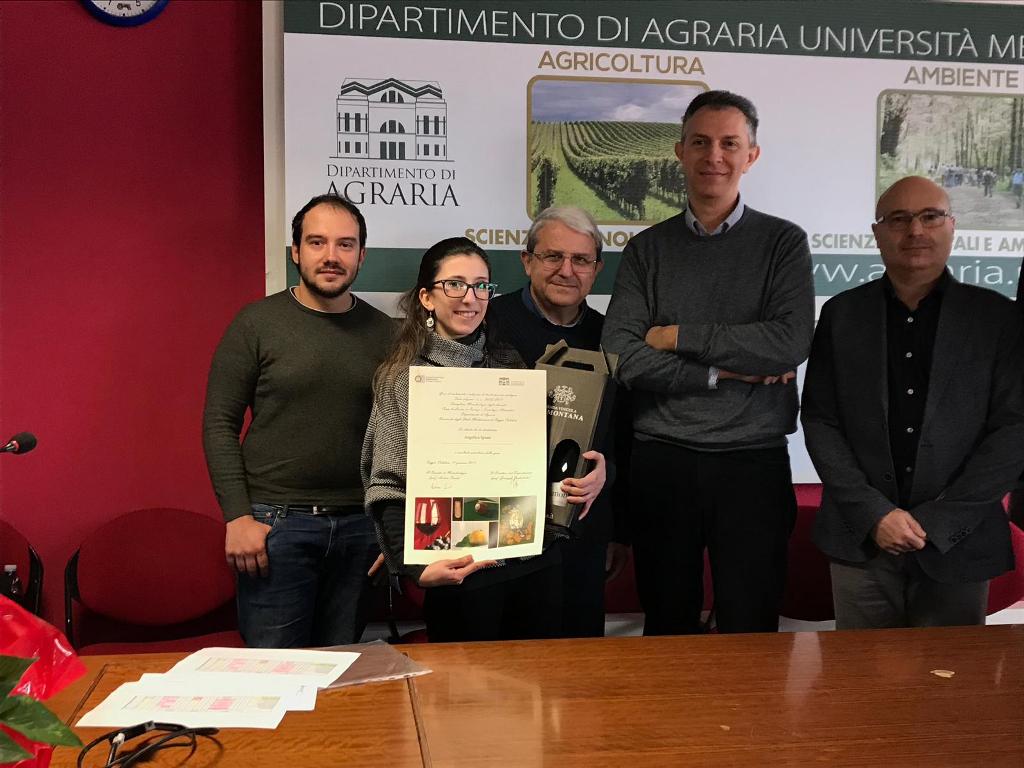 Nell’ambito delle esercitazioni del modulo di Microbiologia delle Fermentazioni - facente parte della disciplina Microbiologia degli Alimenti del Corso di Laurea Triennale in Scienze e Tecnologie Alimentari - si è svolta, su iniziativa del prof. Andrea Caridi, la sesta edizione della “Gara di isolamento e selezione di lieviti per uso enologico”. Al termine del Consiglio di Dipartimento di venerdì 11 gennaio il Direttore, prof. Giuseppe Zimbalatti, ha premiato la vincitrice, Angelica Spanti, e ha consegnato gli attestati di partecipazione agli altri 10 studenti in gara. Nelle edizioni precedenti erano risultati vincitori: Daniela Quartuccio (prima edizione, a. a. 2006-2007), Alessandro Scalese (seconda edizione, a. a. 2007-2008), Gaetano Surace (terza edizione, a. a. 2008-2009), Claudia Denami (quarta edizione, a. a. 2013-2014) e Ilaria Macrì (quinta edizione, a. a. 2016-2017). Le diverse fasi della gara si sono svolte in parte presso l’aula di Microscopia a Feo di Vito e in parte presso il laboratorio di Microbiologia in salita Melissari. L’obiettivo della gara è da sempre quello d’imparare a isolare, identificare e caratterizzare i lieviti presenti nei mosti d’uva, selezionando tra quelli della specie Saccharomyces cerevisiae i ceppi migliori, da utilizzare come starter nell’industria enologica: quindi, imparare divertendosi.