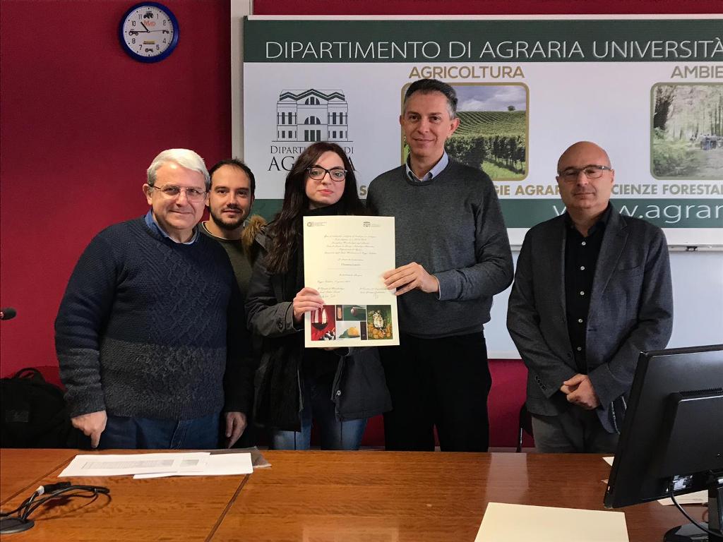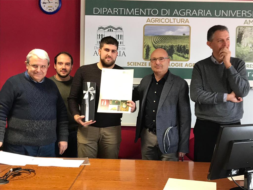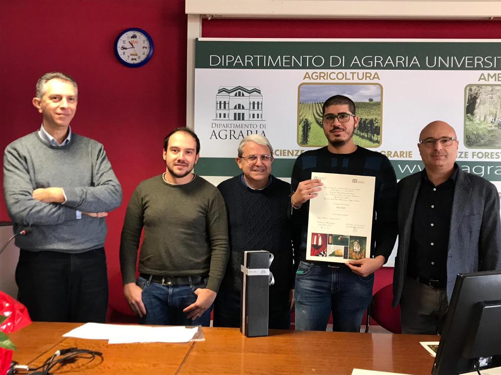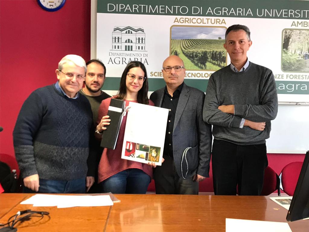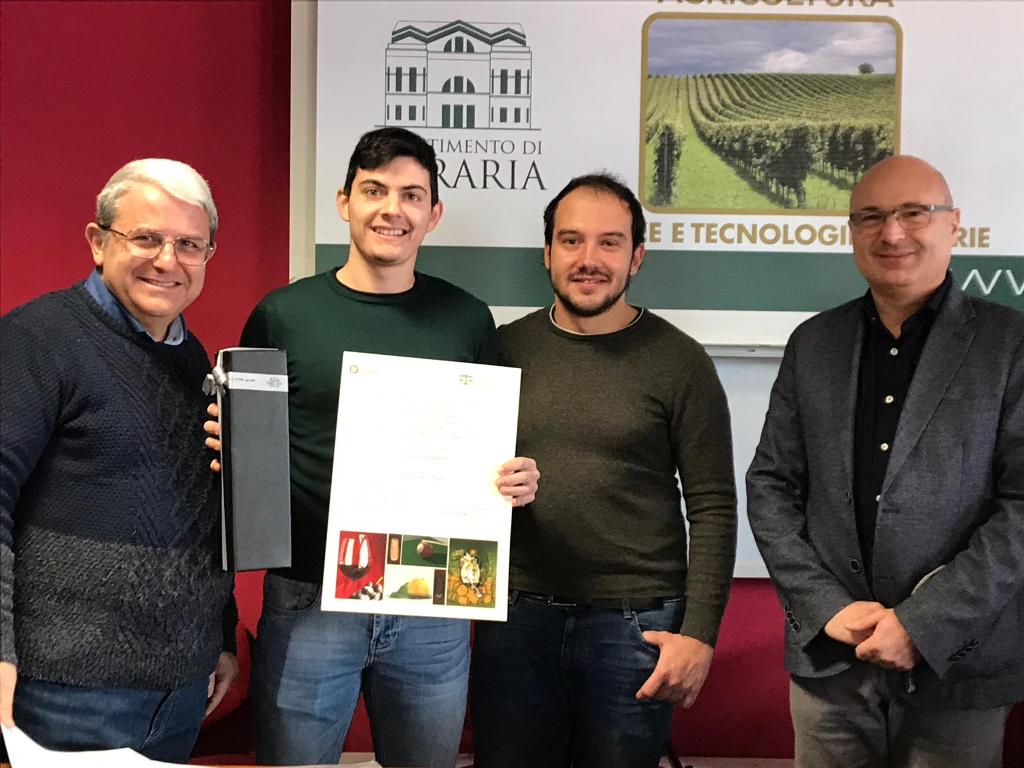 Nell’ambito delle esercitazioni del modulo di Microbiologia delle Fermentazioni - facente parte della disciplina Microbiologia degli Alimenti del Corso di Laurea Triennale in Scienze e Tecnologie Alimentari - si è svolta, su iniziativa del prof. Andrea Caridi, la sesta edizione della “Gara di isolamento e selezione di lieviti per uso enologico”. Al termine del Consiglio di Dipartimento di venerdì 11 gennaio il Direttore, prof. Giuseppe Zimbalatti, ha premiato la vincitrice, Angelica Spanti, e ha consegnato gli attestati di partecipazione agli altri 10 studenti in gara. Nelle edizioni precedenti erano risultati vincitori: Daniela Quartuccio (prima edizione, a. a. 2006-2007), Alessandro Scalese (seconda edizione, a. a. 2007-2008), Gaetano Surace (terza edizione, a. a. 2008-2009), Claudia Denami (quarta edizione, a. a. 2013-2014) e Ilaria Macrì (quinta edizione, a. a. 2016-2017). Le diverse fasi della gara si sono svolte in parte presso l’aula di Microscopia a Feo di Vito e in parte presso il laboratorio di Microbiologia in salita Melissari. L’obiettivo della gara è da sempre quello d’imparare a isolare, identificare e caratterizzare i lieviti presenti nei mosti d’uva, selezionando tra quelli della specie Saccharomyces cerevisiae i ceppi migliori, da utilizzare come starter nell’industria enologica: quindi, imparare divertendosi.