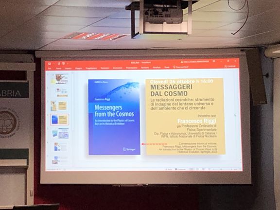 Giovedì 26 ottobre si è svolto il seminario conclusivo del ciclo “NATURA. Intimità/alterità” promosso dalla Biblioteca dell’Area di Agraria dell’Università Mediterranea di Reggio Calabria. Il tema trattato, annunciato con il titolo “Messaggeri dal Cosmo”, è tra i più interessanti che oggi animano il dibattito scientifico: “Le radiazioni cosmiche: strumento di indagine del lontano universo e dell’ambiente che ci circonda”. Relatore ne è stato il Prof. Francesco Riggi (INFN, CERN), uno dei massimi esperti internazionali in materia, già Ordinario di Fisica Sperimentale presso il Dipartimento di Fisica e Astronomia dell’Università di Catania.