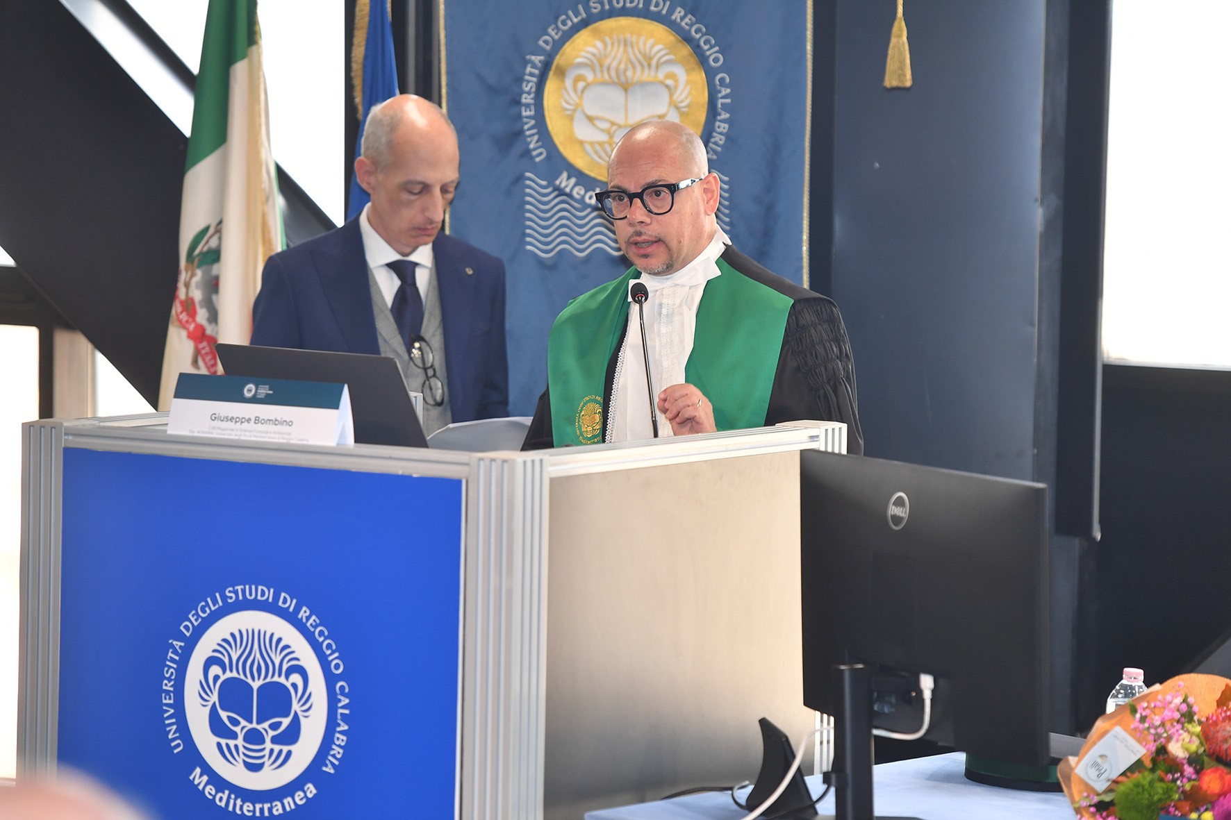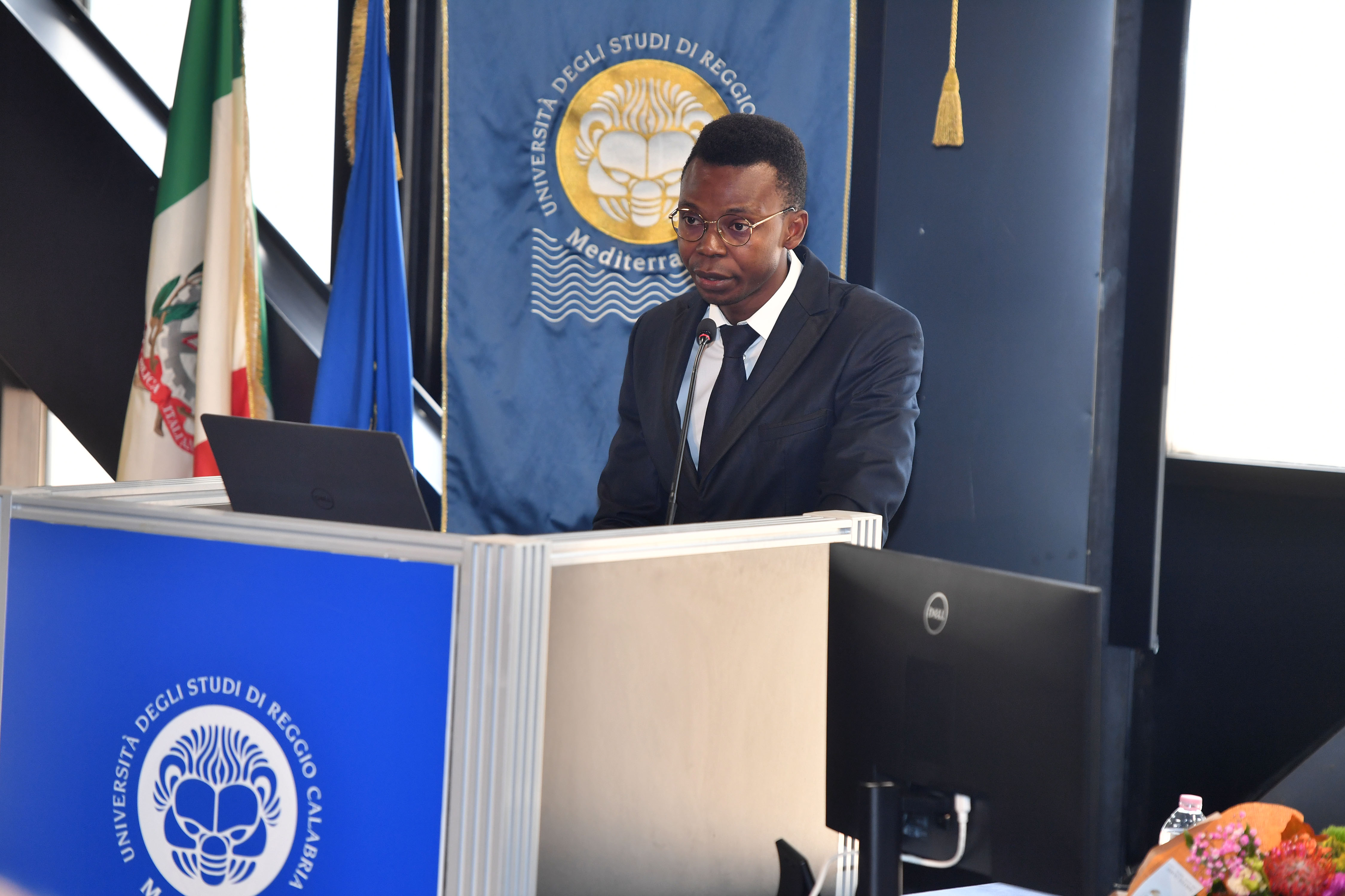 La Cerimonia inaugurale è proseguita con gli interventi degli studenti Isabella Scardino presidente del Consiglio degli Studenti che si è detta onorata di poter parlare a nome di tutti gli studenti della Mediterranea, cuore pulsante di questa università che “ogni giorno dà l'opportunità di crescere non solo come professionisti, ma anche come cittadini del mondo, con una visione aperta, curiosa e innovativa” e dello studente Winner Ozekhome, che, dopo aver conseguito la laurea triennale in Ingegneria informatica, ha proseguito il suo percorso magistrale, commuovendo la platea col racconto della sua vita stravolta durante l’ultimo anno di liceo, quando un commando terroristico di Boko Haram, assaltando il suo Istituto, seminando morte e distruzione, lo obbligò ad un terrificante e disperato viaggio, in cerca di salvezza e libertà, per Winner “quando una passione ti brucia dentro, ti permette di mantenere fisso l’obiettivo della meta da raggiungere, cancellando i dolori e le sofferenze, che lungo il percorso si possono subire”.