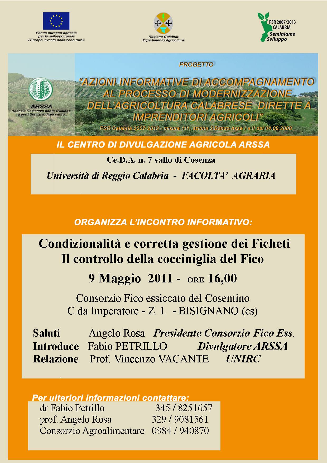 Giovedì 9 l'Arssa e la Facoltà di Agraria organizzano un incontro formativo sul tema: "Condizionalità e corretta gestione dei Ficheti, il controllo della cocciniglia del Fico" In allegato programma evento