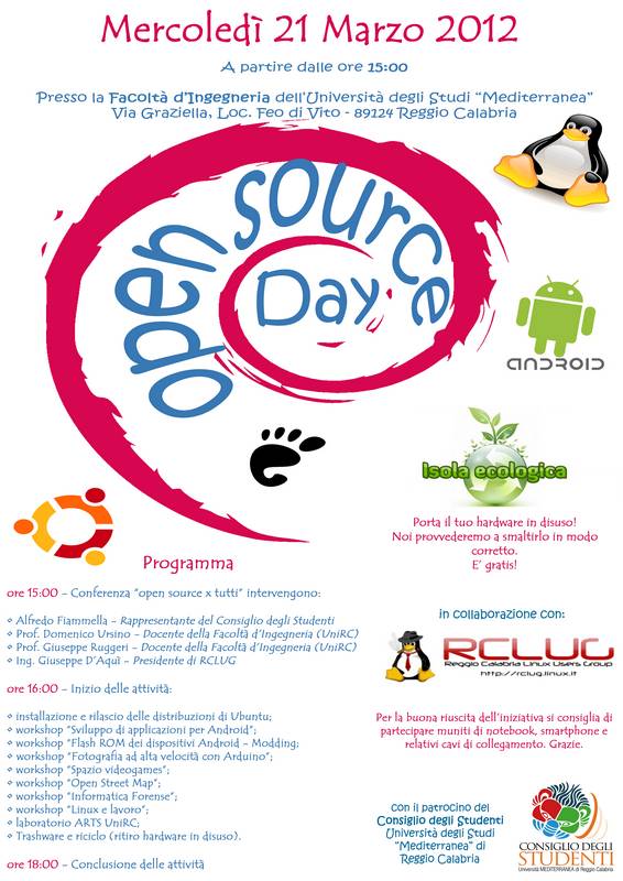 - Open Source Day è un’iniziativa ideata ed organizzata interamente da studenti o ex-studenti dell’ateneo reggino;